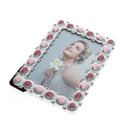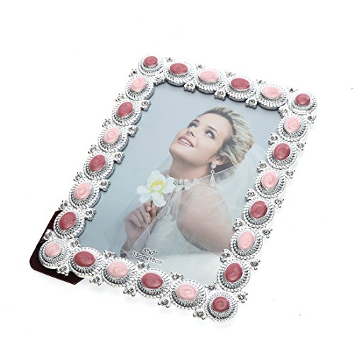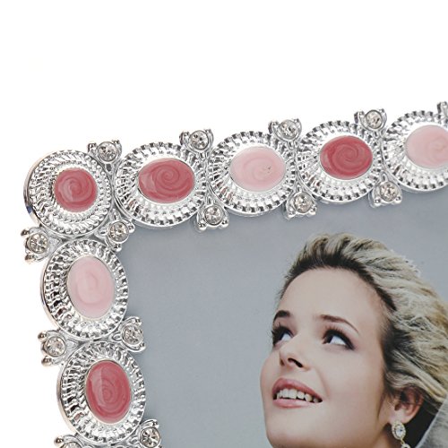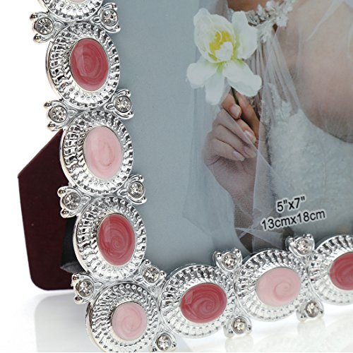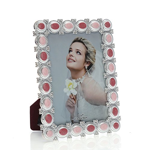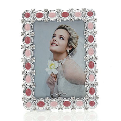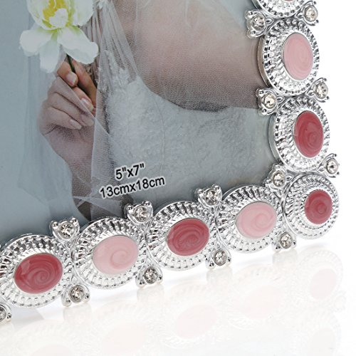 5x7 Fun Enamel and Crystal Decorated Plastic Picture Frame,wedding Center Table Showcase,Horizontal or Vertical Display,with Glass Front (5x7, Pink)