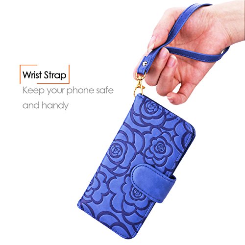 iPhone 6 Plus / 6S Plus Case, WeLoveCase Vintage Emboss Flower [Removable Strap] PU Leather Wallet Case with Card Slots & Cash Pocket Folio Kickstand Flip Cover for iPhone 6 / 6S Plus 5.5" - Blue