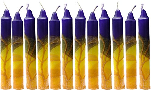 - Safed Candles Decorative Shabbat Candle Set with Fancy Orange, Yellow, Purple, and Orange Stripes