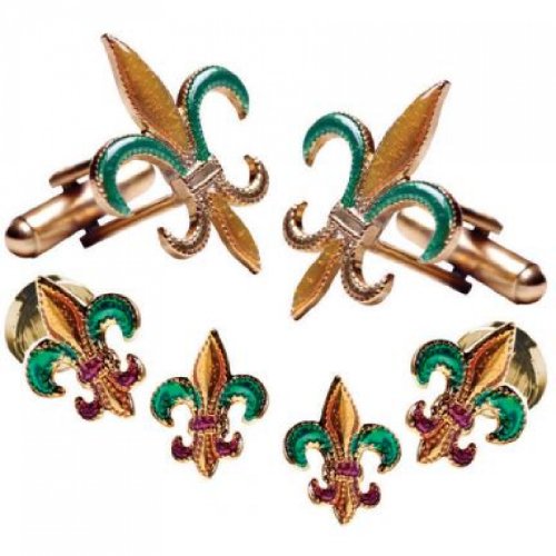 Product Description This is the traditional symbol of the French royalty, and a popular symbol during Mardi Gras. The set is available in gold with brightly painted enamel so you can match them to the rest of your accessories. Each set includes two standard cufflinks for a French cuff shirt, and four button studs. 0