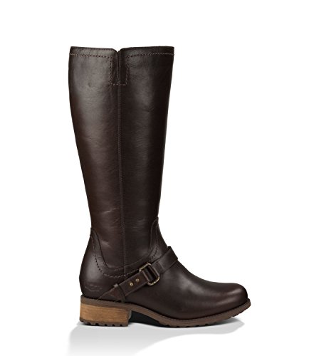 Studio : Deckers Outdoor Corporation Publisher : Deckers Outdoor Corporation Binding : Apparel Product Description Elegant in form and practical in function, the Dahlen redefines winter dressing for the sophisticated set. An equestrian-inspired strap details the timeless silhouette, crafted in water-resistant full-grain leather, with a medial metal zip for easy on and off. Luxurious, natural wool lines this classic tall boot, delivering moisture-wicking warmth, while a 1 ½" rubber heel ensures all day wearability with a ladylike lift Collection Details: Insole: 3mm Poron cushioning covered in 7mm curly UGGpureTM Outsole: Molded rubber bottom with 1 ½" stack Leather wrapped heel. Style Details: Water resistant full grain Leather tall boot Equestrian inspired strap and metal buckle Medial metal zipper Heat embossed UGG® logo 14 1/2" shaft height Other: This product is made in US, China, or Vietnam, varies by product. 0