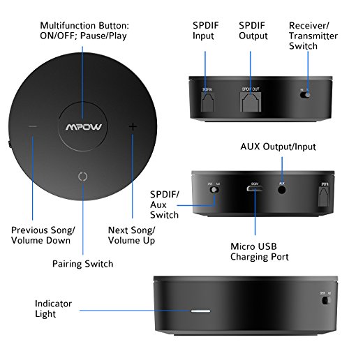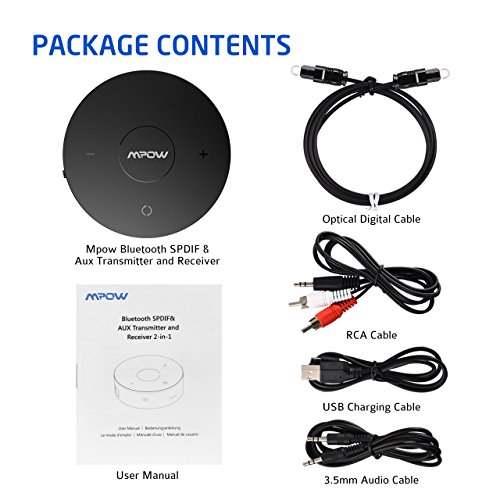 Mpow Bluetooth 4.1 Transmitter / Receiver ,Built with Digital Optical SPDIF ,Low Latency 2-in-1 Bluetooth Wireless Audio Adapter for TV / Home / Car Stereo System / Headphones / Speakers