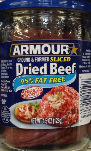 Armour Star Sliced Dried Beef is made with fresh beef that is dried until it takes a robust flavor. Each slice contains nine calories and is 95% fat free. Ideal for today's health conscious people who are looking for low fat food. Great for your favorite recipe. Serve it cold in appetizers, sandwiches or salads. Served hot, it adds zest to soups and casseroles. And don't forget the great American favorite every family loves… Creamed Chipped Beef on Toast! Armour Star Sliced Dried Beef… ready to eat… anytime… anywhere.