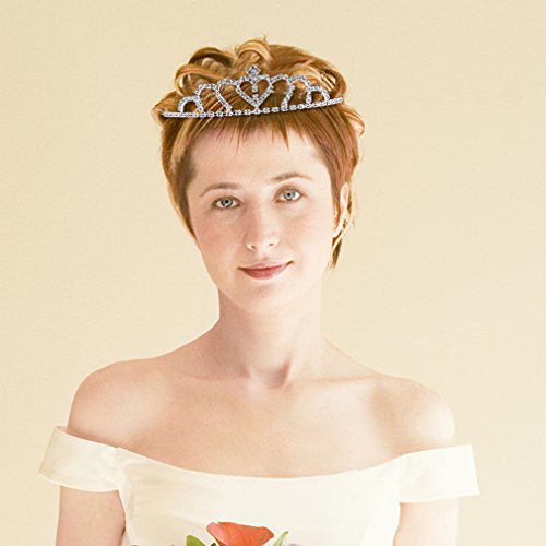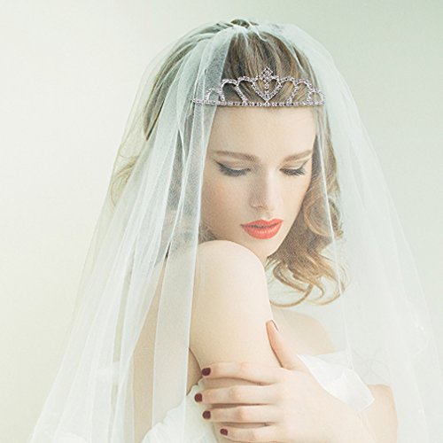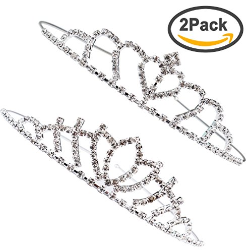 Exacoo Pack of 2 Pretty Rhinestone Tiara Crown Wedding Bridal Birthday Pageant Princess Hair Loop Headband Gorgeous Crown, Silver