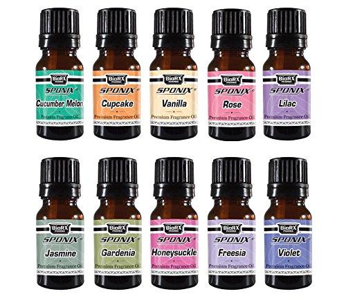 Top Favorites Set of 10 Premium Grade Fragrance Oils Set #2 - Frosted Cupcake, Rose, Honeysuckle, Gardenia, Lilac, Jasmine, Cucumber Melon, Violet, Freesia &...