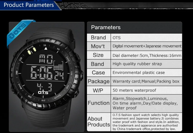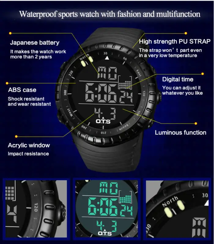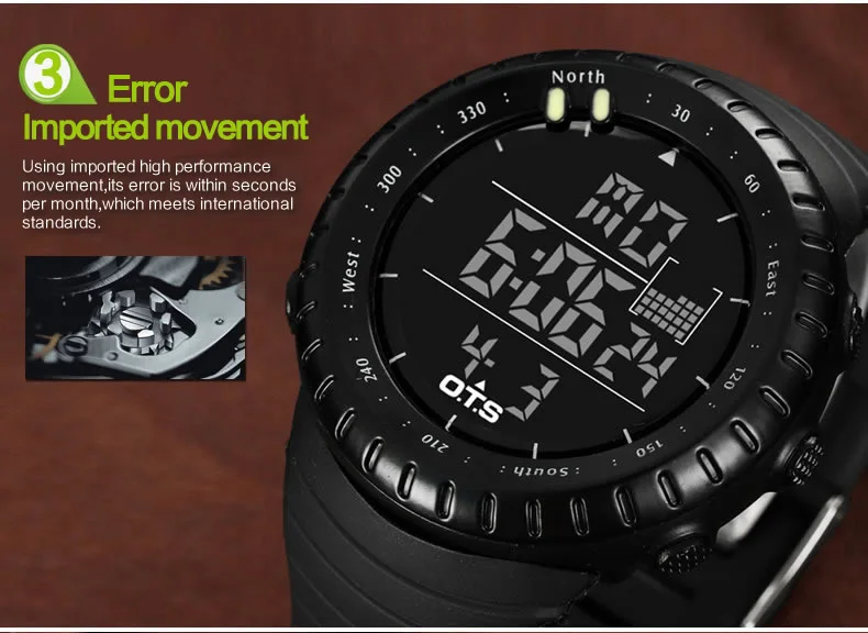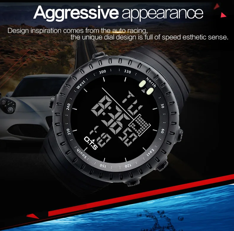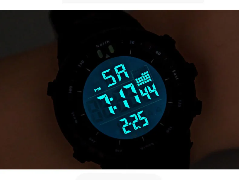 Feature:Stop Watch,Back Light,LED display,Luminous,Auto Date,Chronograph,Complete Calendar,Water Resistant,Alarm