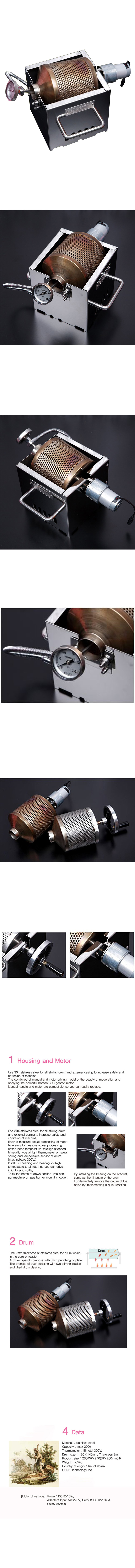KALDI-5 Mini Home Coffee Bean Roaster with Thermometer (200~250g) -Gas Burner Required (Auto Motorize)