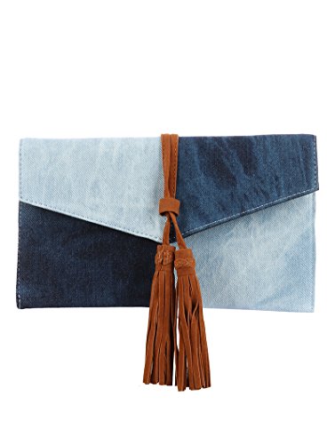 -. Title : Two Tone Denim Suede Tassel Magnetic Closure Clutch