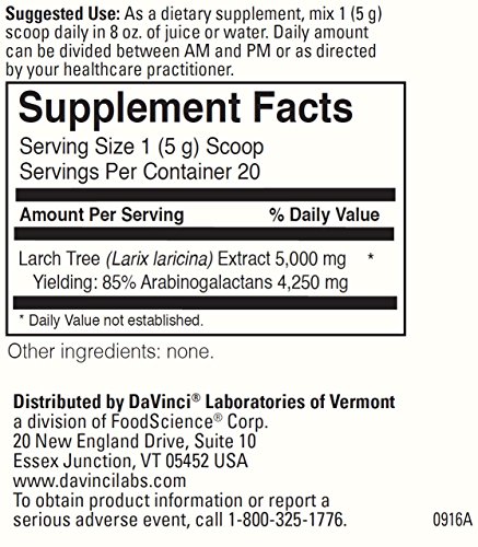 A larch tree supplement to support immune system function and microflora balance in the GI tract.* Arabinogalactans from larch trees are water-soluble polysaccharides that promote the growth of probiotic bacteria such as Lactobacilli and Bifidobacteria in the intestines, which are important for GI Tract health.* The Larch Tree Extract powder in this product is ImmunEnhancer AG from Larex, Inc.