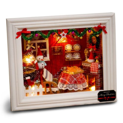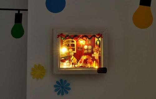 -. Title : WYD Doll House DIY Model Furniture Chirstmas Frame LED Lights Wood Flower Doll House Miniature Hand Made For Children Christmas Birthday Gift