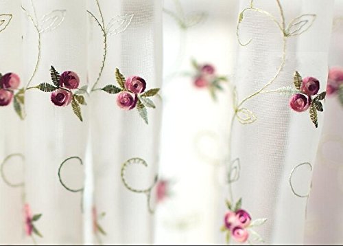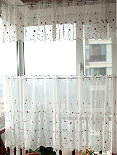 DOKOT® Embroidery Kitchen Curtain, Cafe Curtain, Dining Room Curtain, Sunshine Semi Sheer Valances (Red Bud, 18 x 60 inches (45x150cm))