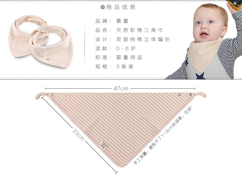 彩棉三角巾、包边工艺、双按扣可调节、安全无印染、两面都可以用的