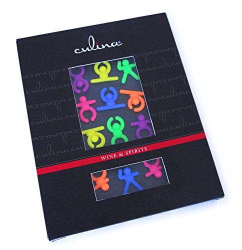 This colorful and playful set boasts 12 friendly characters holding what appears to be Yoga poses or unidentified acrobatic postures. All of which aims to simplify your life and let your party guests stick to their own glasses both figuratively and literally.