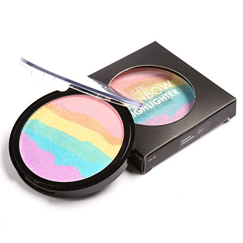 Kuulee Rainbow Highlighter Makeup Palette Cosmetic Blusher Face Shimmer Powder #02