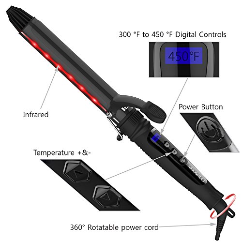 INFRARED RAY HAIR PROTECTION: Infrared of curling wand protect your hair from over drying and ensure sleek and shiny results each time. Infrared technology creates shiny, softer, healthier hair by locking in moisture and removing hair bacteria.