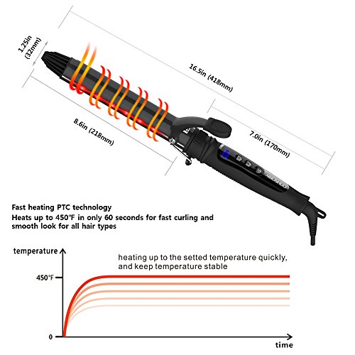 FAST HEATING & ADJUSTABLE DIGITAL CONTROLS: Heats up to 450 ℉ in only 60 seconds for fast curling and smooth look for all hair types.