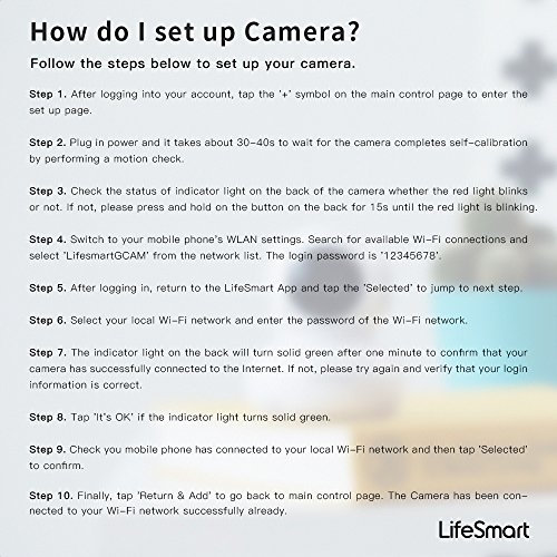 -. Feature : 1080P High-definition, 135 degree wide-angle advanced glass lens combined with 270 degree horizontal & 120degree vertical rotation range create a complete 360 degree coverage. Advanced night vision with viewing distance to 5-10 meters in pitch dark with no light pollution, so your baby or pet will not be disturbed by LED glare. / 30 Sec Wi-Fi Setup Via IOS Or Android Devices With LifeSmart App.When you are out of home,you can use your smartphone to make sure your home is safety by the LifeSmart App / 103.5 x 85 x 85mm in white color , small size but high quality finishing . It does not need large space , you can just put it on the corner or hang it on the ceiling . It will protect your room . / Built-in speaker and microphone, you can hear what others says and you can also talk to the one who you see on camera. Press the talking button and you can talk to your family and anyone else you are facing . / Local storage: Secure your videos on a micro SD card allowing you to access your video content and history anytime. A 64GB MicroSD can hold up to 1-month--long video with continuous or motion detected recordings.Card slot record directly to SD supported for 64 GB Max