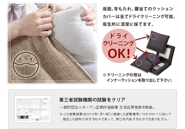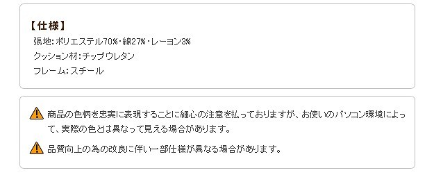材質:張地-ポリエステル70%・綿27%・レーヨン3%、クッション材-ウレタンフォーム、フレーム-スチール