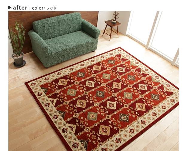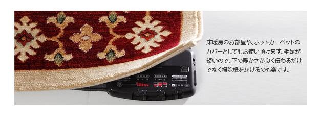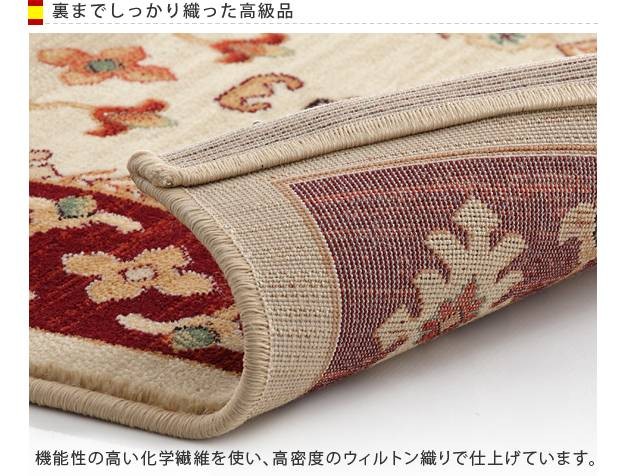 商品について:高密度なウィルトン織りで仕上げられたラグです。高密度に織られ、弾力性がありサックリとした手触り。ヒートセット加工を行うことでへたりを抑え、遊び毛が出にくくなりました♪床暖房、ホットカーペット対応