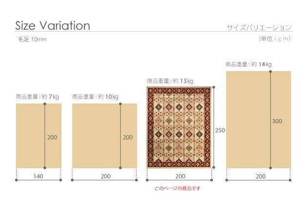 サイズ(cm):200x250/毛足10mm・約13kg
