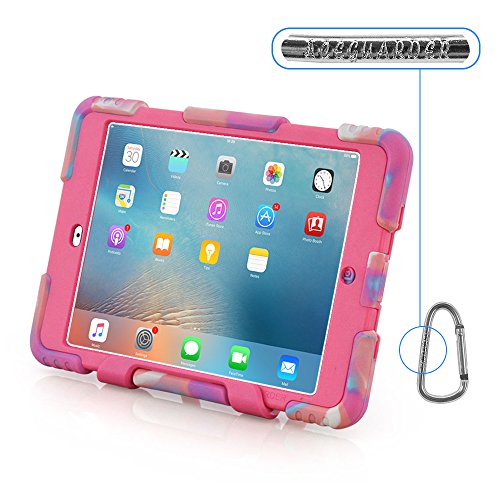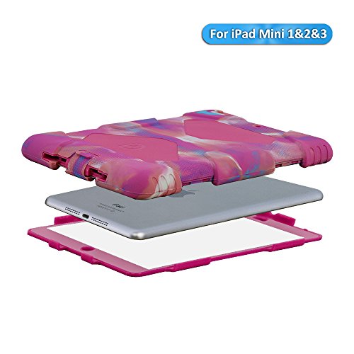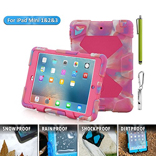 ACEGUARDER Apple Ipad Mini 2 Mini 1&2 Case Waterproof Rainproof Shockproof Kids Proof Case for Ipad Mini 2 Mini 1&2(Gifts Outdoor Carabiner + Whistle + Handwritten Touch Pen)(PINK CAMO ROSE)