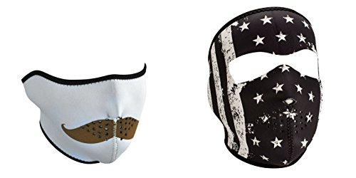 -. Title : Bundle (2 Items): 1 ZanHeadgear 'Mustache' Half Face Neoprene Face Mask -AND- 1 Zan 'Black & White Vintage American Flag' Full Face Neoprene Face Masks, Ski Mask