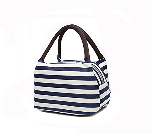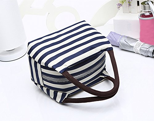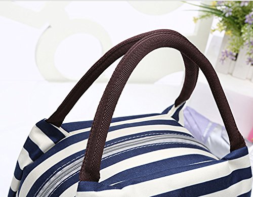 1 Pcs Stripe Canvas Lunch Bag Lunch Box Travel Food Containers Carrier Holder Bento Box Lunch Tote for Picnic or School--High Capacity and Good Insulation