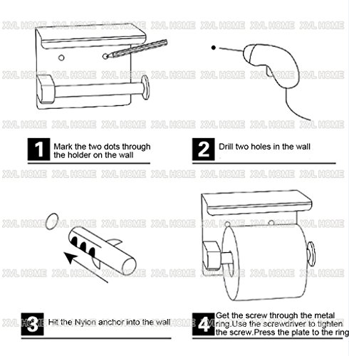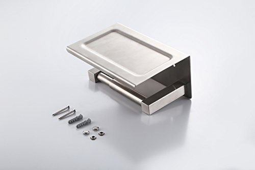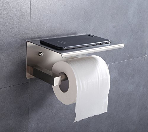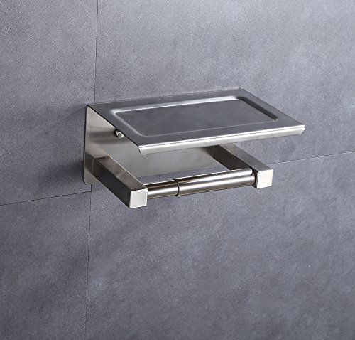 XVL Toilet paper holder with mobile phone storage shelf and spring roller, Nickel Brushed, G325A