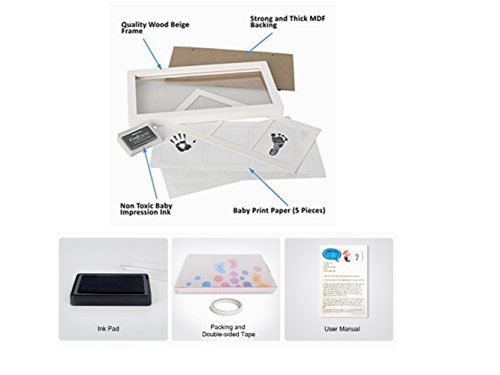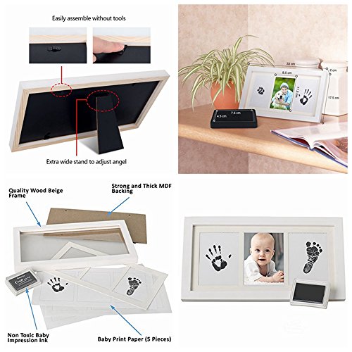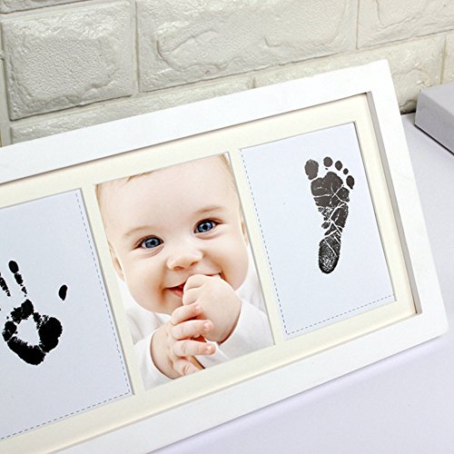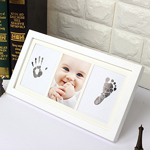 - Material:wood handprint and footprint ink photo frame,Size:13*7.09*0.79inch,photo size:4.33*3.54inch,hand and footprint size:4.33*3.54inch,suitable for 0-2years newborn baby,Can be decorated as a family,Use of places: home,Dedicated to the baby's first gift,Record baby growth moment,Is the memories of the baby and the parents,It is a gift of love,Can be a lifetime collection.