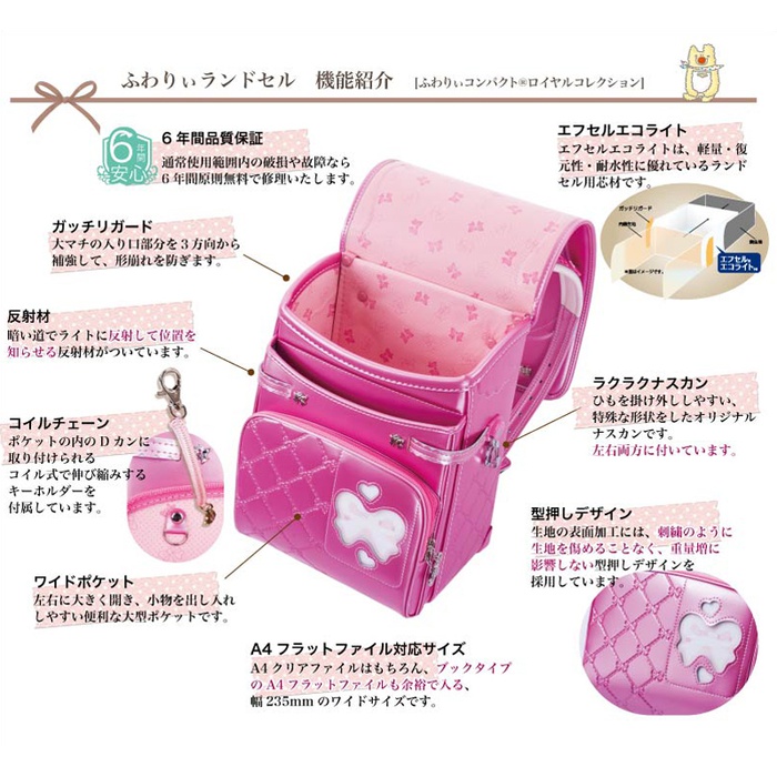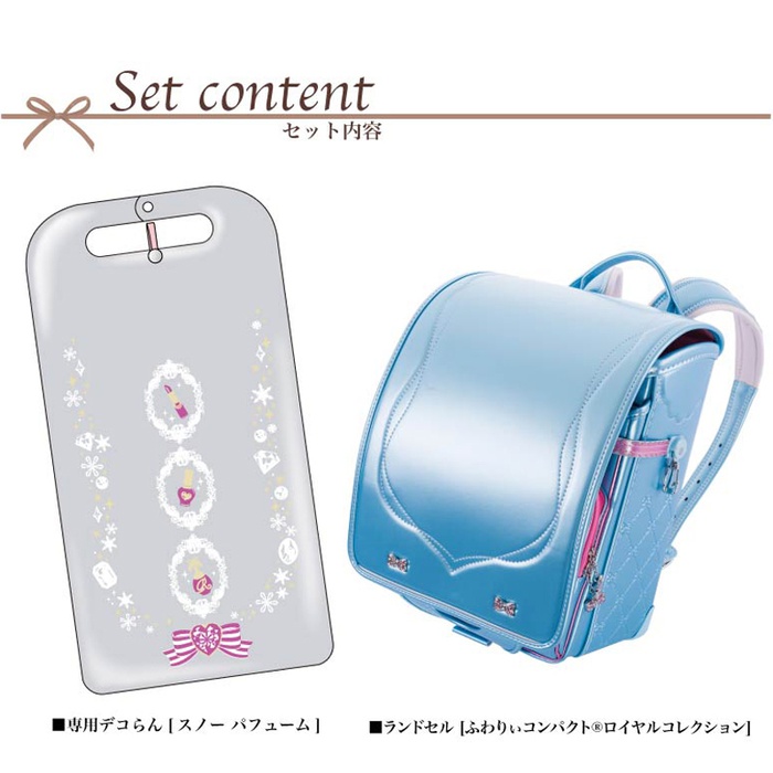 원본상품명: ?量1120g ランドセル ふわりぃ 2018 スノ?パフュ?ム パ?ルカラ? コンパクト ロイヤルコレクション デコらん ランドセルカバ? 2点セット クラリ?ノ 日本製