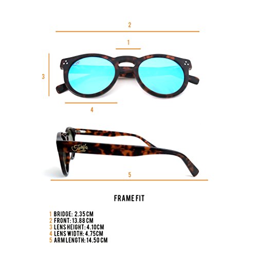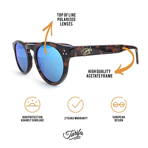 EUROPEAN DESIGN WITH BEAUTIFUL FAUX LEATHER CASE INCLUDED: Tarifa build this classic vintage European design with a modern touch given by our mirrored polarized lenses. This pair fits different face formats, it is unisex and the perfect gift, as it comes with a beautiful case and microfiber cloth. frame