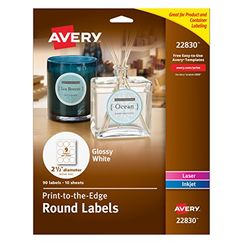 Avery Print - To - The - Edge Round Labels, Glossy White, 2.5-Inch Diameter, 90 Labels (22830)