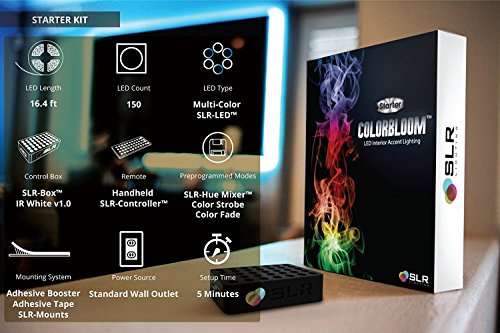 - ColorBloom Starter Kit: No other accessories to purchase. 150 powerful Mikro-SMD™ LEDs in a 16.4-ft strip, SLR-Colorbox™, SLR-Full Featured Remote, Wall Adapter, SLR-Premium Mounting System, and Setup Guide.