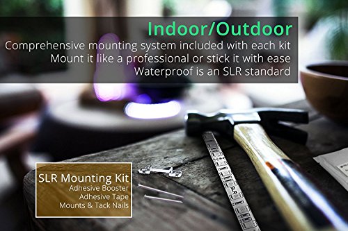 - Premium Mounting System - Our ColorBloom kits include 3 layer mounting system that will ensure your strips stay mounted regardless of where you put it. The first layer of our mounting system is our SLR-Adhesive Booster Pads for prepping the mounting surface for maximum adhesion. Second is our SLR-Adhesive Tape that's pre-mounted onto the back of each strip. The final layer of our mounting system is our SLR-Strip Mounts with tack nails. Our premium mounting system is ideal for indoor/outdoor use.