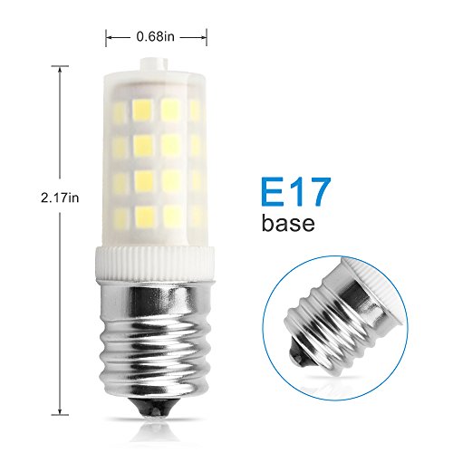 ▼Choice for Security With CE and RoHS certification, our Non-dimmable E17 LED bulb is 100% Lead-FreeMercury-Free. Zero pollution compared with E17 incandescent light bulbs, safe for your family. ▼Great Light for Your Microwave Oven Fits all E17 connector type or E17 intermediate base including over and under microwave oven light, closet Light, freezer, refrigerators, floor lamp, recessed Lights, curio cabinet etc. ▼Warm Tips ?DON'T install the E17 bulb inside microwave oven. ?The E17 oven bulb may keep glowing slightly even when you turn off power, because a small amount of electricity still run through traditional dimmer or switch which you never notice but LEDs are sensitive to it. This is a common phenomenon and does not affect using.