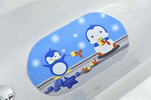 EVIDECO Anti Slippery Rubber Non Slip Bath Tub Mat PENGUIN CHILDISH Safety Skid 27.16"L X 15.35"W Blue
