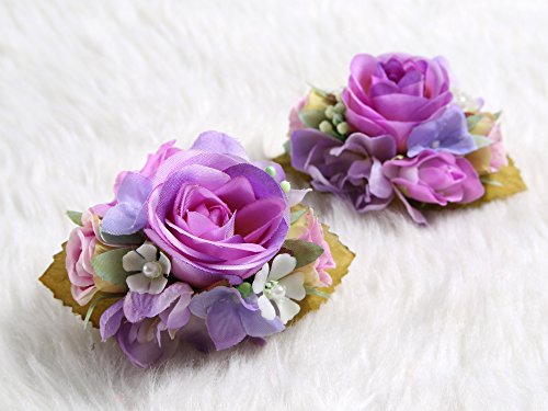 Charming Flower Boutonniere Pins for Wedding prom (2pcs) (Purple theme)