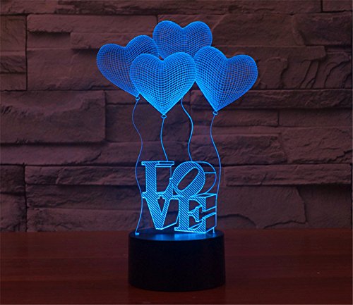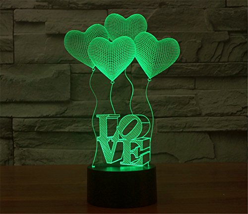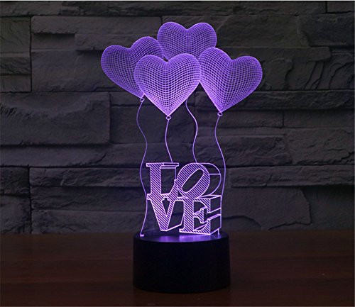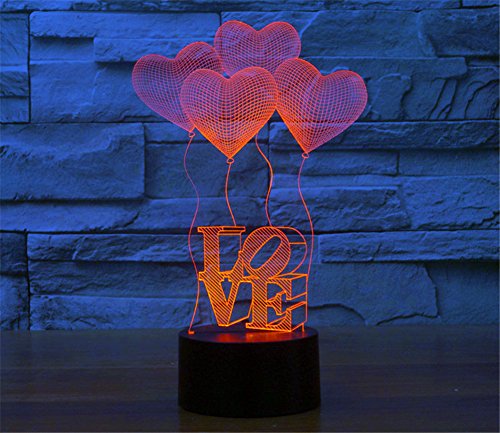 -. Title : SmartEra® 3D Optical Illusion 4 Love Shapes and Letters LOVE Lighting Night 7 Color Change USB Touch Button LED Desk Table Light Lamp