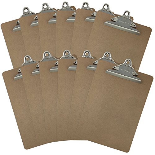 Letter Size Clipboards 9'' x 12.5'' Standard Clip Hardboard (Pack of 12)