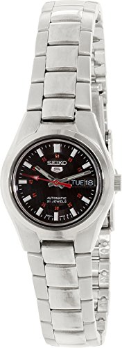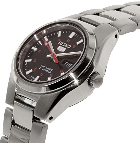 Black dial with silver-tone hands and hour markers; luminous; red arabic numerals and second hand