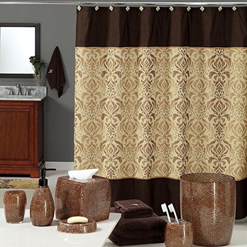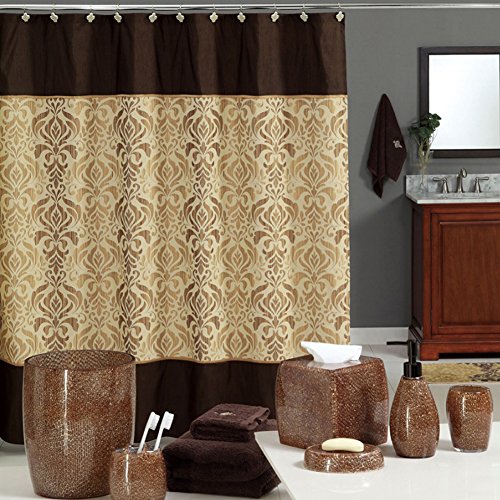 DS BATH Sterling Brown Shower Curtain,Chocolate Polyester Fabric Shower Curtain,Vintage Shower Curtains for Bathroom,Damask Bathroom Curtains,Print Waterproof Shower Curtain,72"W x 72"H