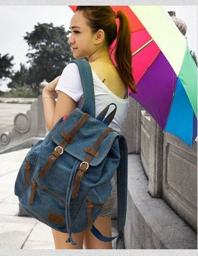 Feature : The package includes a blue casual spacious retro backpack. According to the size [L: 28cm (11.02inch), H: 42cm (16.5inch), D: 16cm (6.5inch)] it is very comfortable to carry and the light weight allows you to move without feeling heavy. / The 100% brand new high quality rucksack has shoulder straps attached to it. These straps are made adjustable to make it a complete product. It is one of the finest products of our brand to let you carry everything you need. / This product is made up of durable and high quality canvas and PU leather. That is why it is suitable for many occasions like school, traveling, camping and other outdoor activities. / The shoulder straps are of unique design to ease the pressure on your shoulders. The pockets and lining designs are scientific and reasonable to let your goods lay in the bag systematically. / This bright blue backpack is so spacious that most of your living necessities can be loaded freely. The bag is ideal companion to take with you while you are going out. It makes your daily life convenient and colorful.