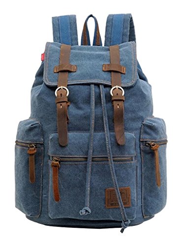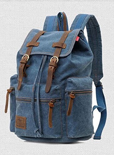 Title : Vintage Retro Canvas Backpack School Bag School College Laptop Bag Rucksack Blue