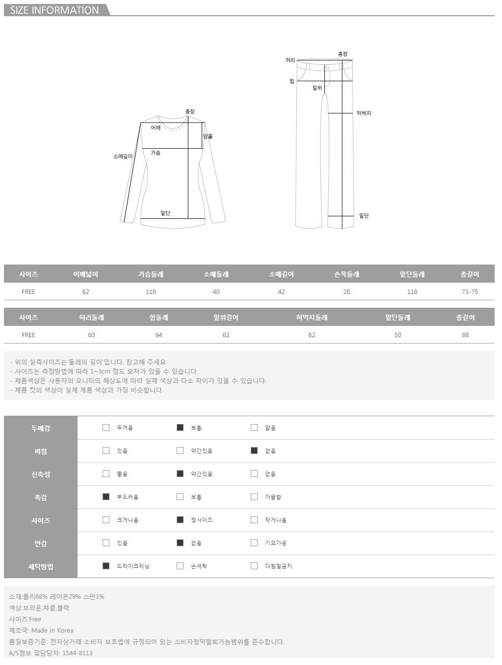하의 허리는 밴딩으로 마감되어 편안한 착용감을 드리며,