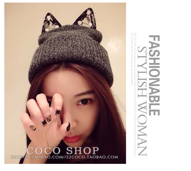 水钻搭配蕾丝猫耳朵,手工制作,独特的设计又不会太显夸张,潮妞们的选择!