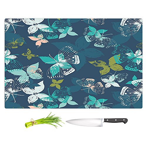 DiaNoche Designs CB-MetkaHitiButterfliesBlue1 Artist Metka Hiti-Butterflies Blue Cutting Boards from, Small 11" x 8"