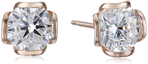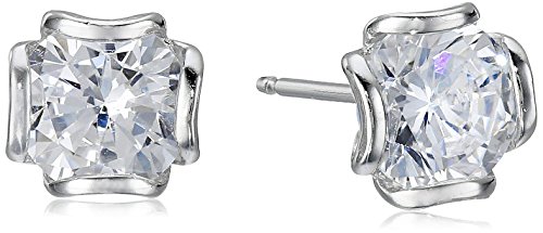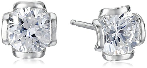 -. Title : Sterling Silver Cubic Zirconia Round-Cut Flower Basket-Set Stud Earrings