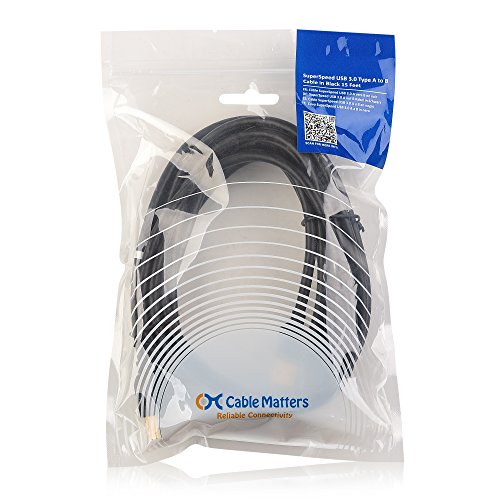High performance USB 3.0 type A to type B cable connects a desktop external hard drive, powered USB hub, USB docking station, 3.5 inch hard drive enclosure, or scanner and monitor equipped with type B USB 3.0 port to a computer for speedy file transfer