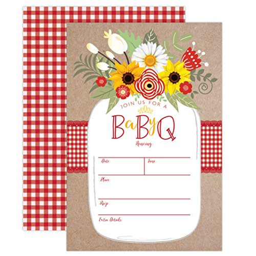 Baby BBQ Invitation, Baby Shower Invite, Baby Q Barbeque Summer Invition Printable, Mason Jar Floral, 20 Fill in Invitations and Envelopes
