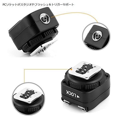 -. Feature : 1.カメラ上部のホットシューに取り付けることで外部ストロボとのシンクロコードの差し込みが可能となります。 / 2.Canon E-TTLフラッシュのすべての機能をサポートしています / 3.ソニー、コニカミノルタブランドのカメラはキヤノン、ニコン、パナソニック、サムスンや他のブランドのフラッシュを変換できる。 / 4.この商品はセンタートリガを持っている他のブランドのフラッシュトリガーを支持できる。 / 5.この商品はPCコンセントがスタジオライトとフラッシュにトリガーするのことが支持する。